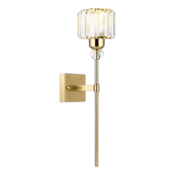 Sleek, slim, and subtly glamorous. This wall sconce pairs a gold base with a faceted glass shade—ideal for lounge settings, glam back bars, or elegant entryway builds.