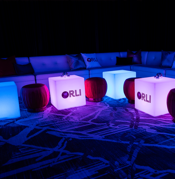 Light up the space with these fun LED cubes! Use them as ottomans, tables, or just to add some light and color. Cubes can be set to any color and look great with custom graphics.