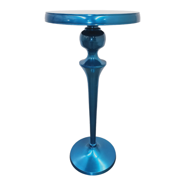 Bright blue gloss cocktail table with bulb details and sleek lines.