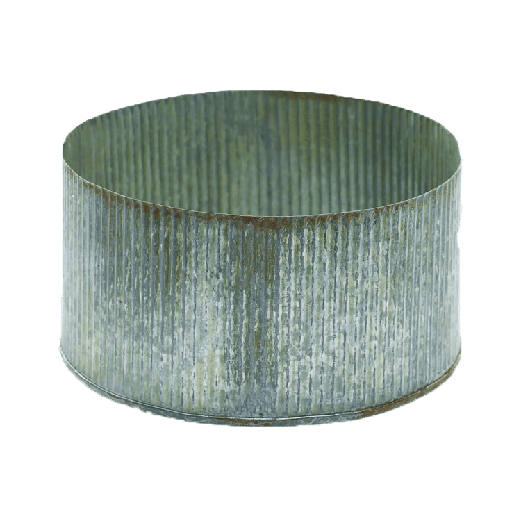 This ribbed metal pot brings texture and scale, anchoring florals in industrial, rustic, or casually styled event designs.