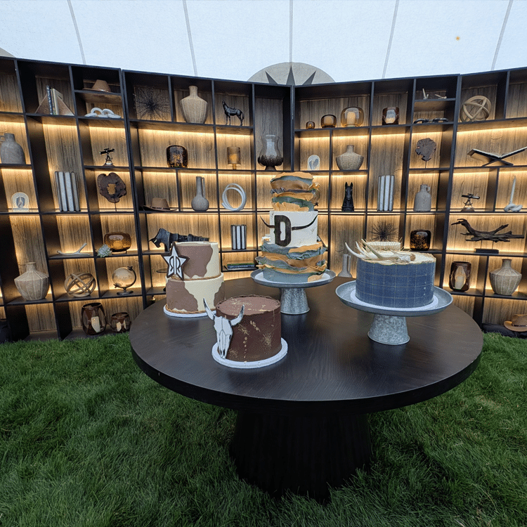 The Oxford Shelves are a striking architectural display designed to bring warmth and depth to an event space. Each unit features built-in backlighting that creates a soft, ambient glow across the shelves. They come standard with sleek black backing, with optional custom graphic panels available to tailor the look—ranging from wood textures to mirrored or patterned designs. Used individually or grouped together, Oxford Shelves create dramatic backdrops for bars, lounges, product displays, and styled moments throughout an event.