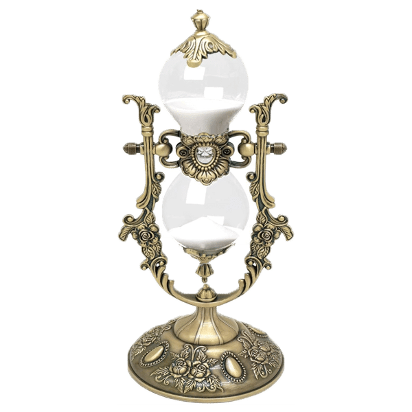 Enjoy the intricate detailing of this sleek tabletop hourglass. Metal and crystal ornaments add drama and a vintage touch to this piece.