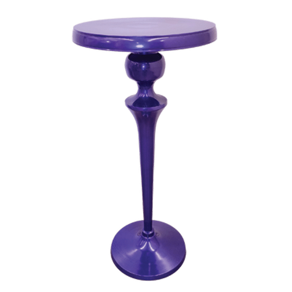 Electric purple gloss cocktail table with bulb details and sleek lines.