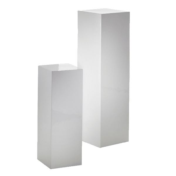 Glossy white column provides smooth surface perfect for vinyl applications for corporate logos or reception seating charts. Cluster together at entryways to frame doorways, aisles, or photo opportunities. Embellish further with florals, candles, or other decor.
